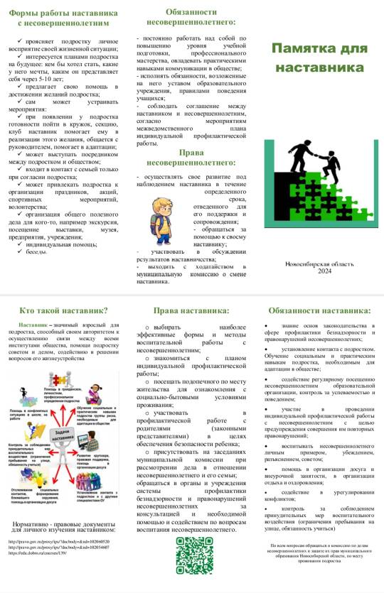 21.12.2023 вступил в силу закон Новосибирской области «О наставничестве над несовершеннолетними в Новосибирской области» (N 414-ОЗ), регламентирующий порядок подачи заявления кандидатом в наставники и его рассмотрении.