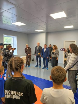 Директор спортивной школы Денис Александрович Чаховский и почетные гости поздравили всех с открытием обновленного спортивного зала, и отметили, что с новым спортивным залом в нашей школе будут новые спортивные достижения.